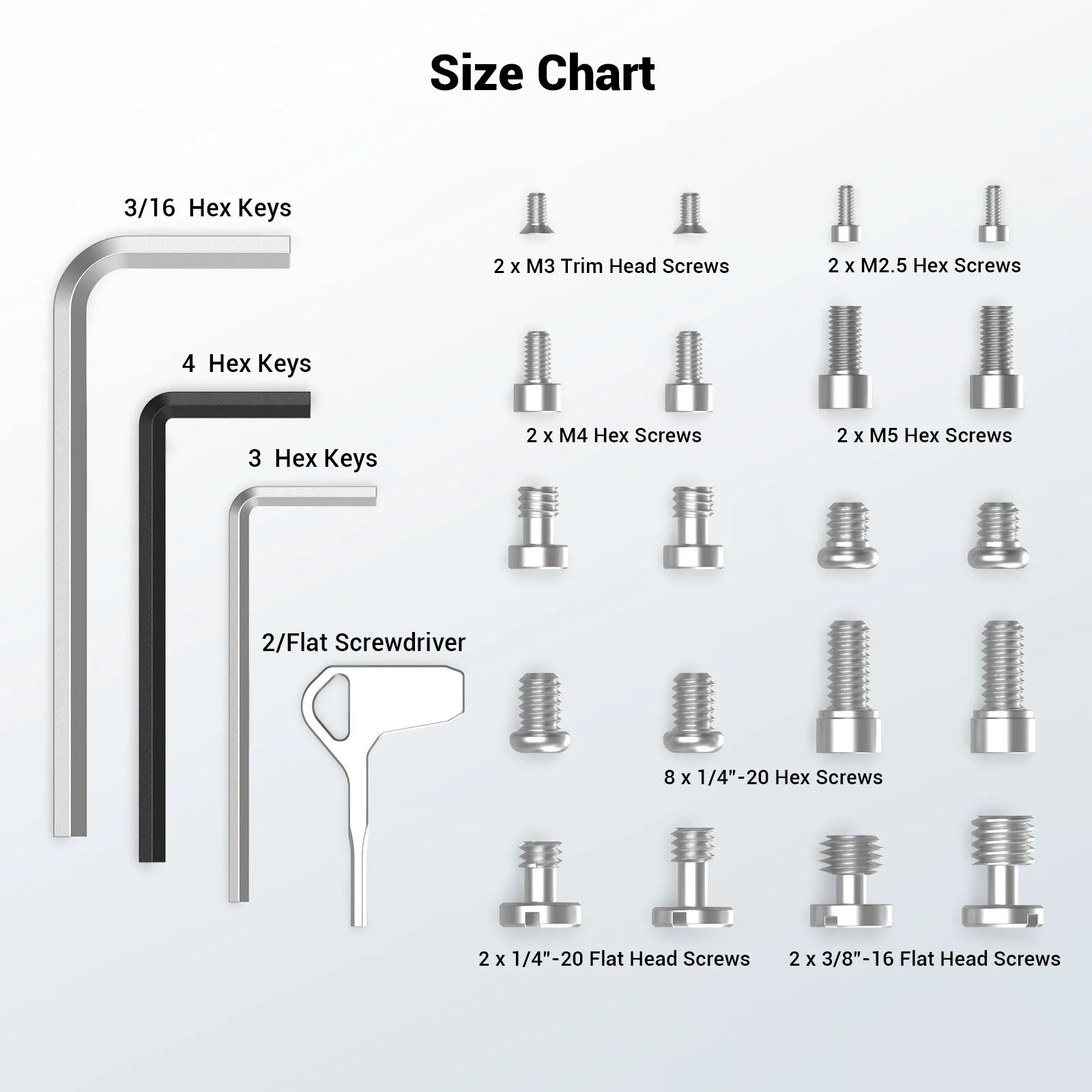 1. Dedicated for commonly used screws and hex keys of camera rigs.