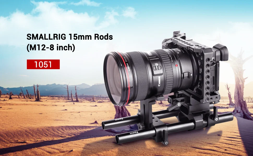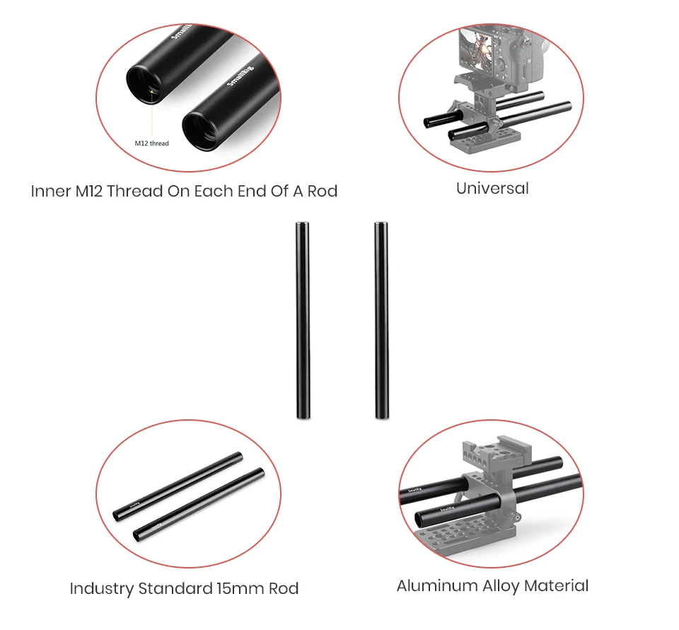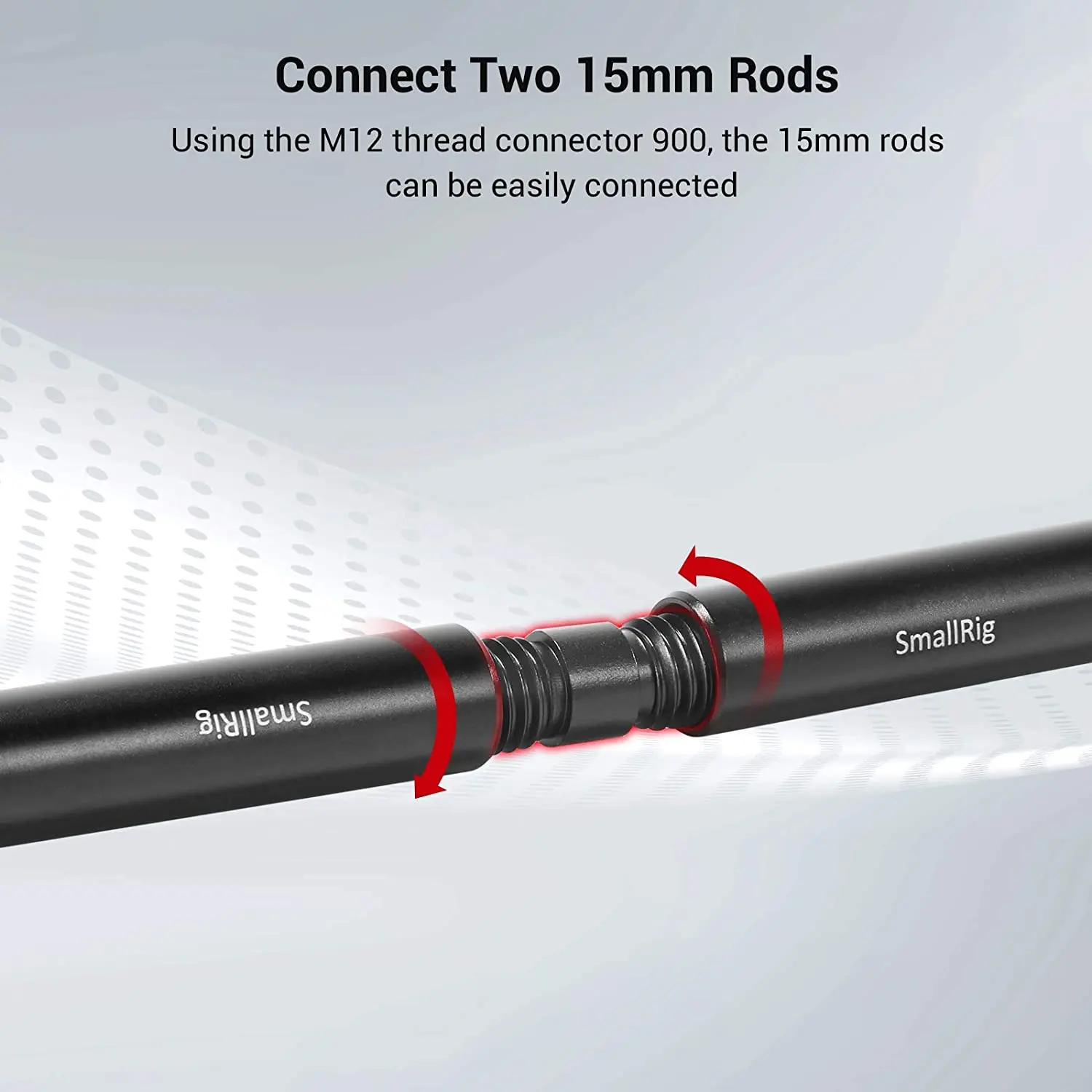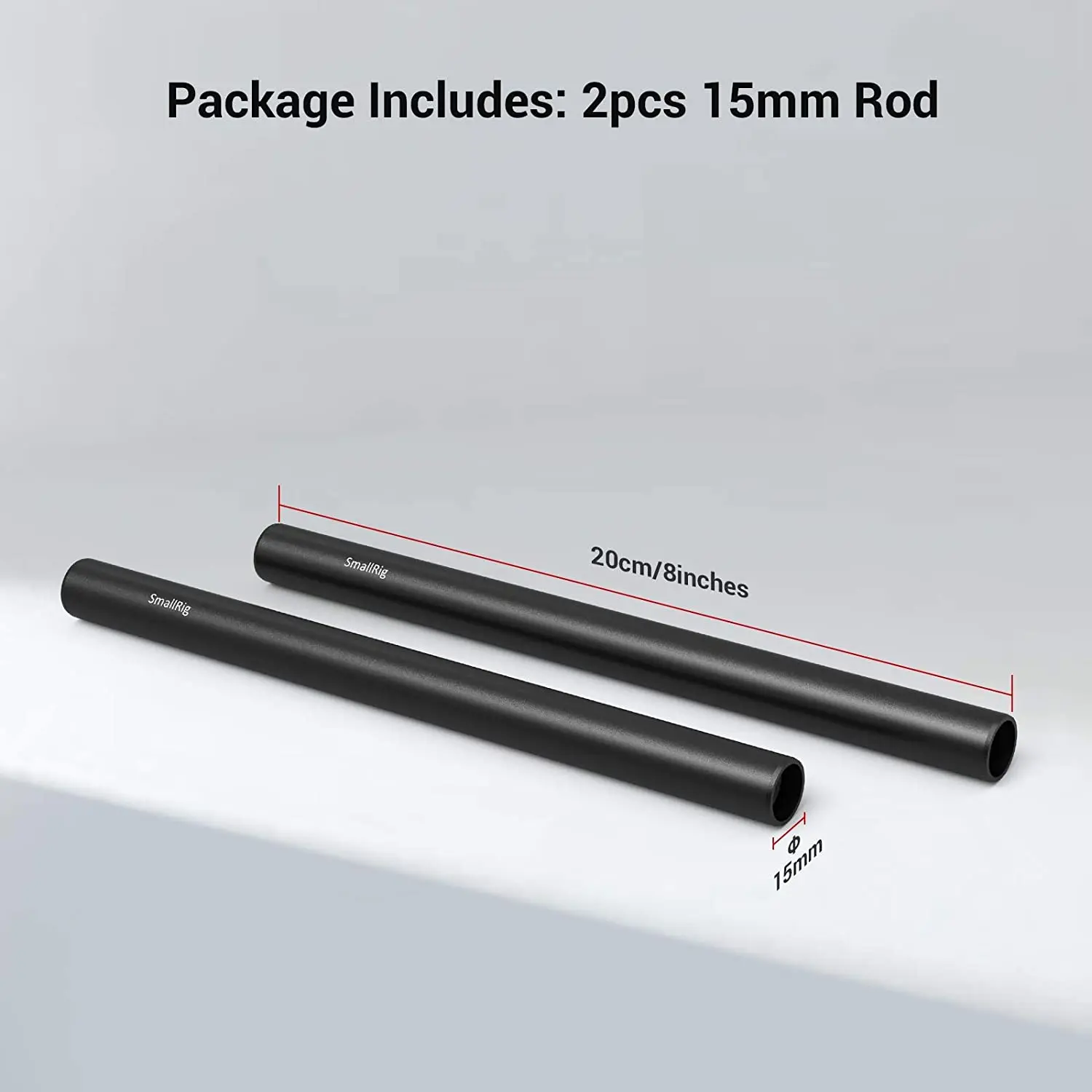 SmallRig Black Aluminum Alloy 15mm Rod M12-20cm 8inch Long (2 Pack)- 1051