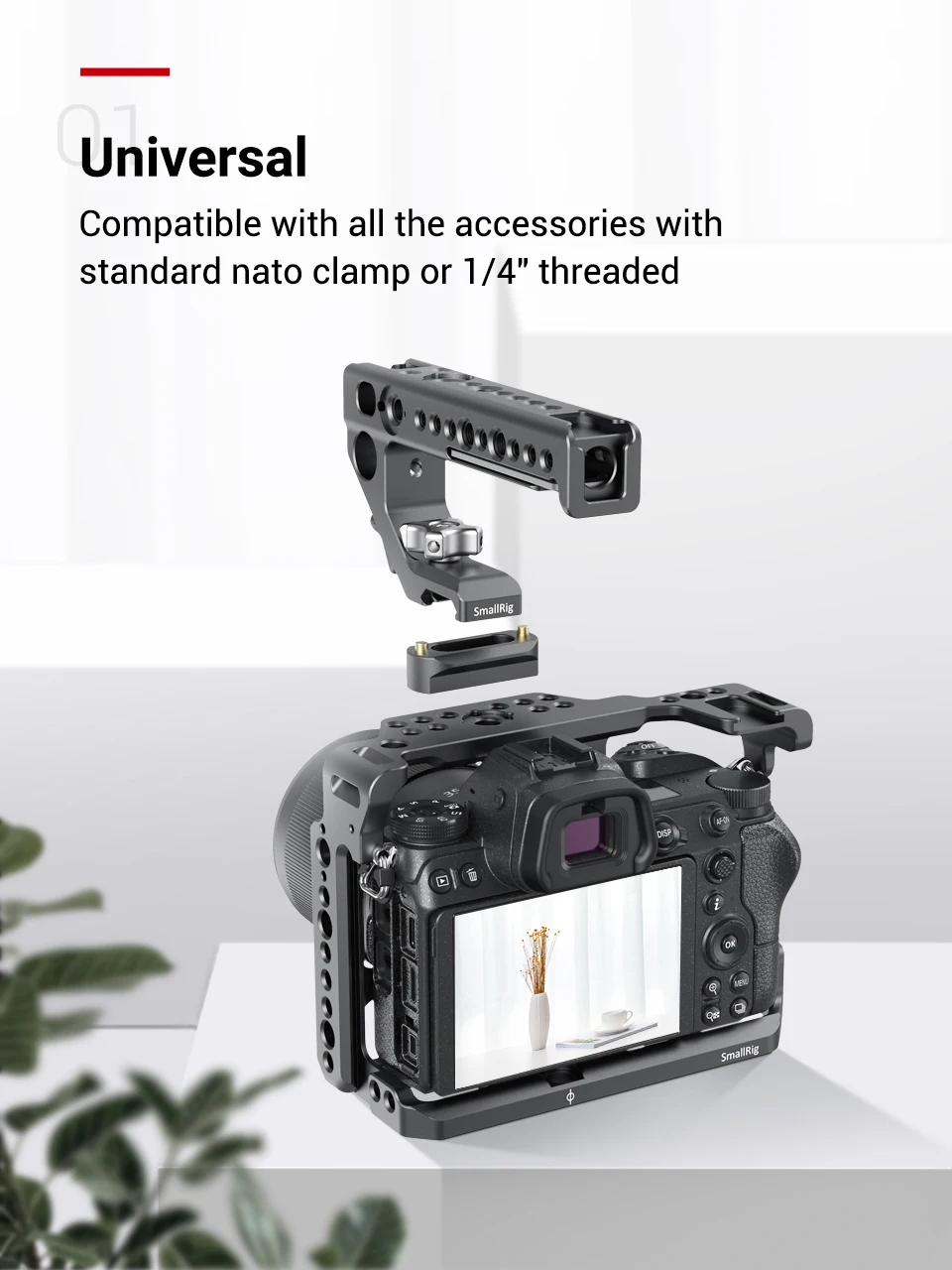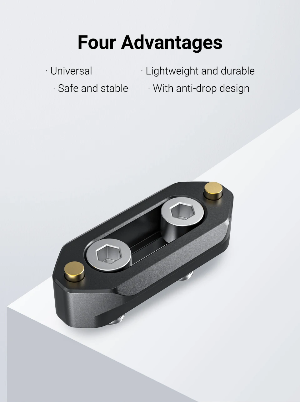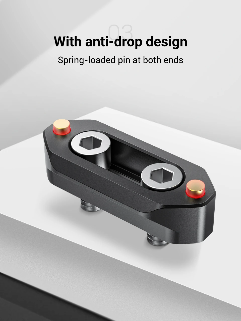 46mm standard quick release safety rail is part of our QR-Handles. The spring-loaded pin on each end of the rail prevents accidental accessory detachment. Compatible with smallrig nato handle 1649, RED Epic, Scarlet, Black Magic Camera and other third-party accessories.