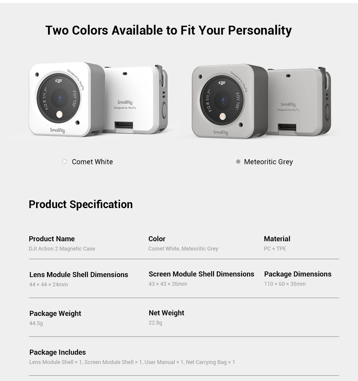 SmallRig Case For DJI Action 2 Magnetic Anti-scratch Anti-drop Anti-slip Insulation Formfitting Suits multiple Scenes 3627