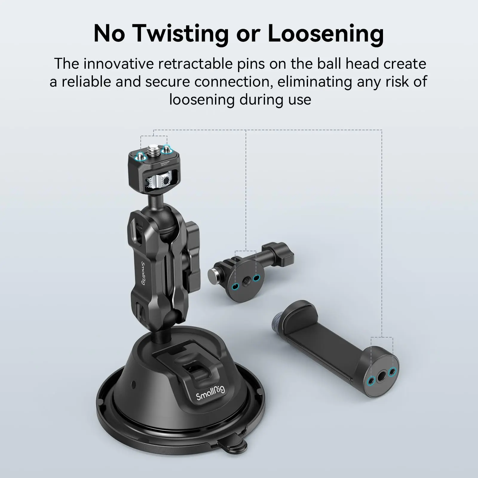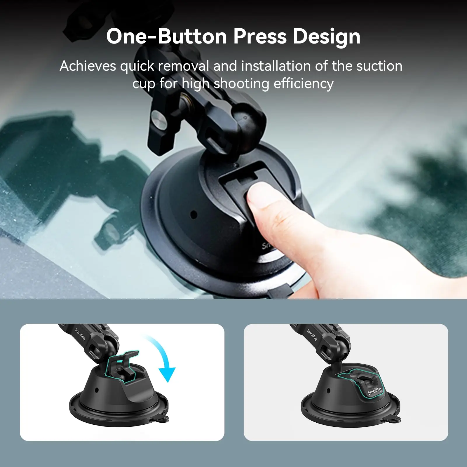 SmallRig Portable Suction Cup Mount Support for Smartphones / Action Cameras SC-1K 4275 is designed for car photography using smartphones or action cameras. It can adhere to dry, smooth and clean surfaces and support any action camera that features a universal mount. For secure, stable and long-lasting support, the mount comes with a patent double-layer suction cup, which is quickly removed and installed via the one-button press design. The top anti-twist metal structure further ensures safety and stability during shooting. With the adjustable dual ball head, you can take shots in different scenarios at any angle as needed. Besides, a special suction cup dust cover is included to prevent dust, thus prolonging its service life.