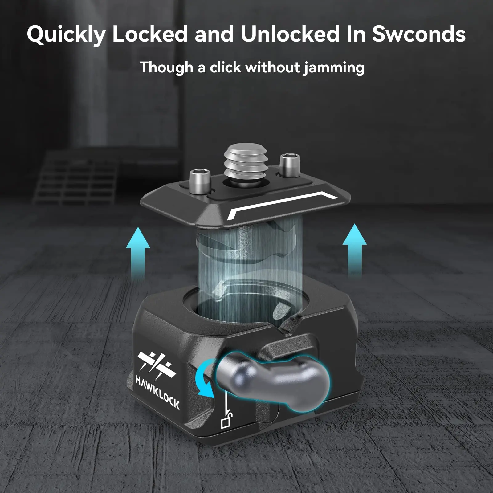 The universal clamp and plate system ensures a secure connection, while its low-profile aluminum build keeps your rig lightweight and streamlined. Whether you’re switching between tripods, gimbals, or cages, the HawkLock delivers fast, reliable transitions with minimal setup time.