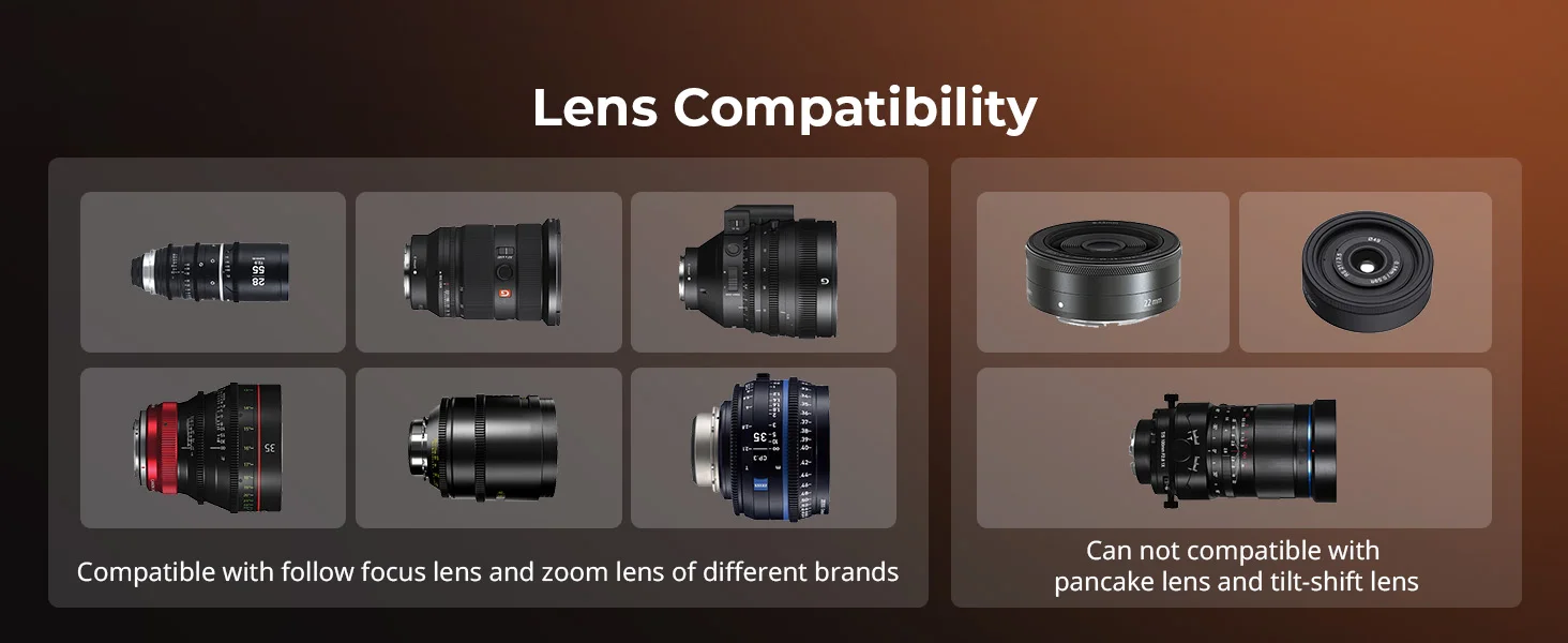 3.The silicone gear is compatible only with DSLR and mirrorless lenses. Please remove it before using cinema lenses.