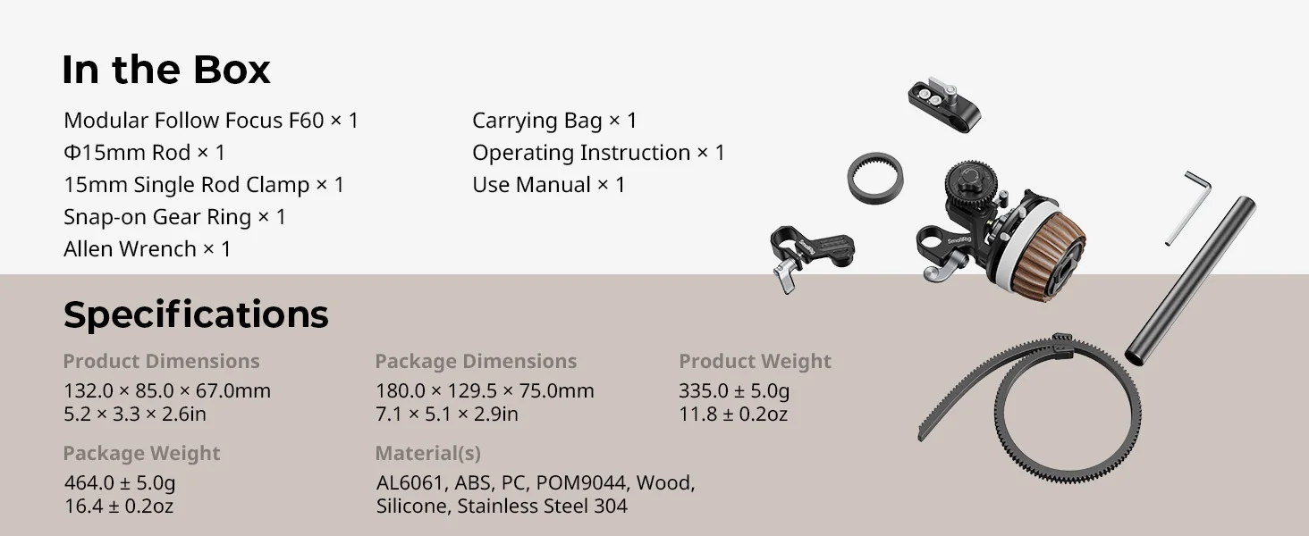 · Wide-Range Stepless Damping Adjustment: Customizable damping (0.6kgf-1.8kgf) for smooth, cinematic focus control.