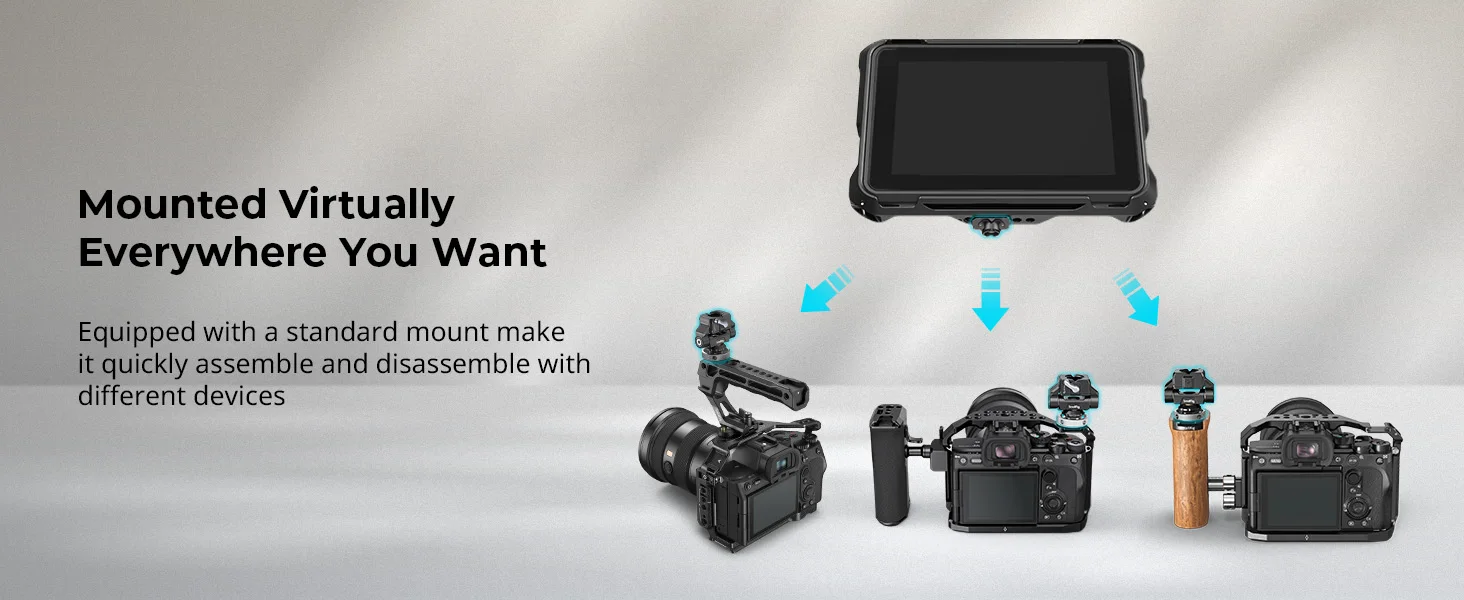 2. The dowel pins are only compatible with Atomos Ninja V, Ninja V +, Atomos Shinobi 7; The dowel pins need to be removed when using other brands of monitors.
