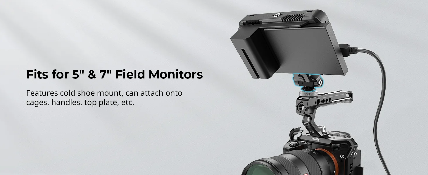 SmallRig Quick Release Camera Monitor Mount with Cold Shoe,Supports Swivel 360° and Tilt 170° Adjustable,Drop-in HawkLock Holder