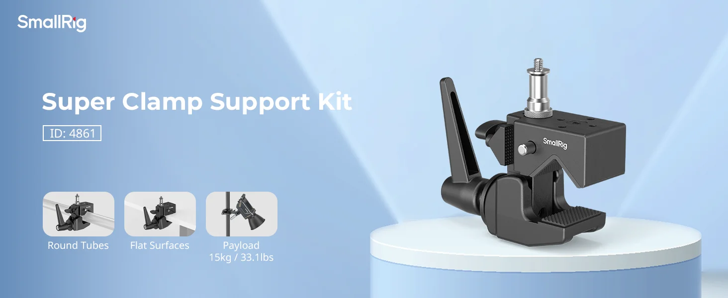 Built for strength and versatility, the SmallRig Super Clamp Support Kit is a compact yet powerful mounting solution for filmmakers and content creators. Crafted from premium aluminum alloy, this rugged clamp supports up to 15kg (33 lbs), making it ideal for securely mounting cameras, monitors, microphones, video lights, and more.