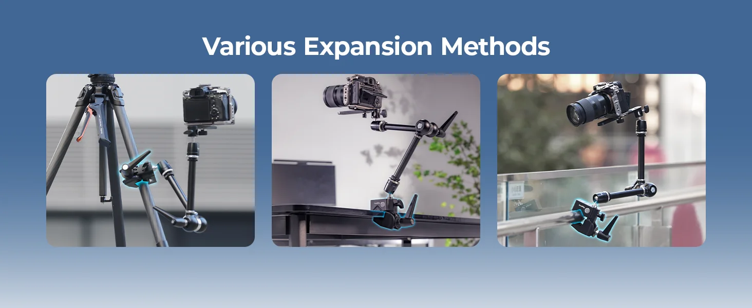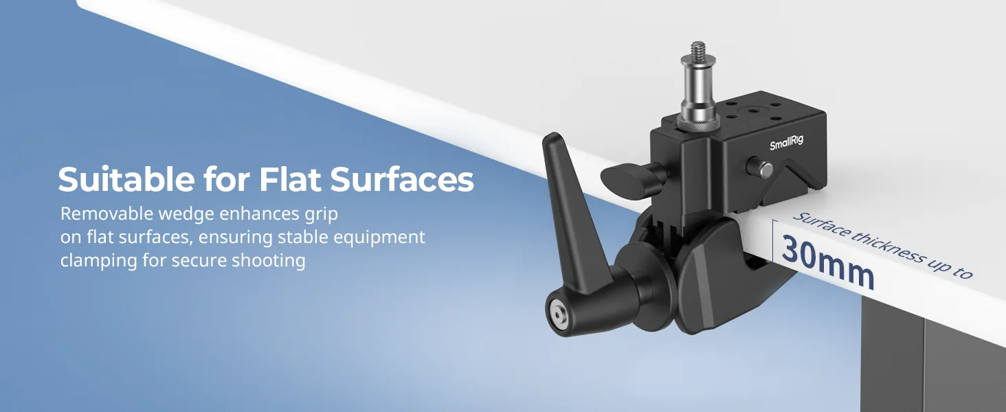 Equipped with a standard 1/4"-20 top screw, it’s compatible with a wide range of gear and accessories. The strong clamping jaws grip onto rods, tables, tripod legs, and other surfaces with confidence, while the anti-slip pads ensure stable, scratch-free mounting.