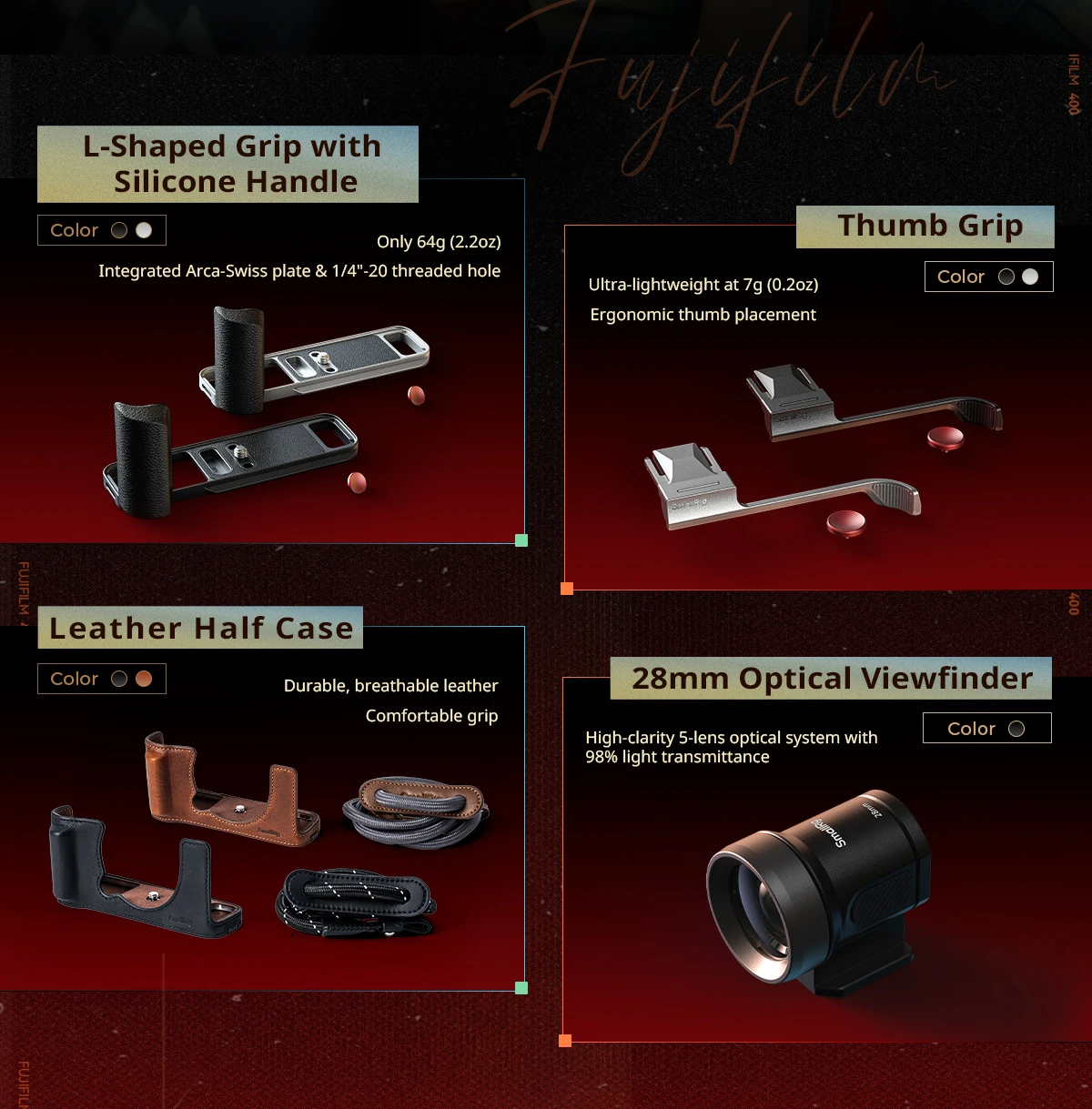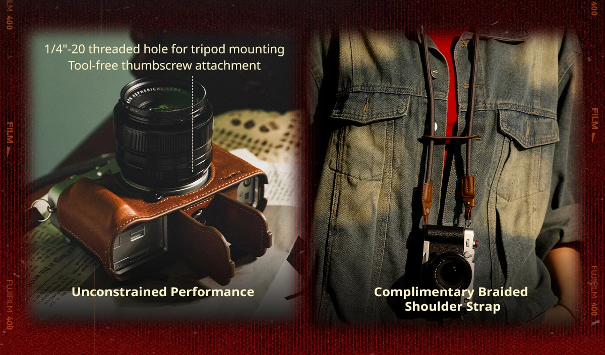 Crafted from premium top-grain leather, the case offers exceptional durability and breathability, complemented by a distinctive retro aesthetic. The integrated foam handgrip enhances stability and comfort during use, while the microfiber suede lining effectively protects the camera from scratches.