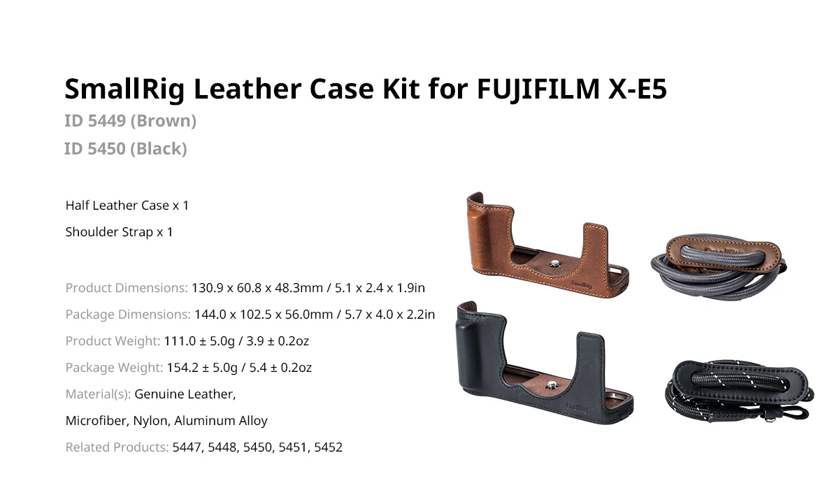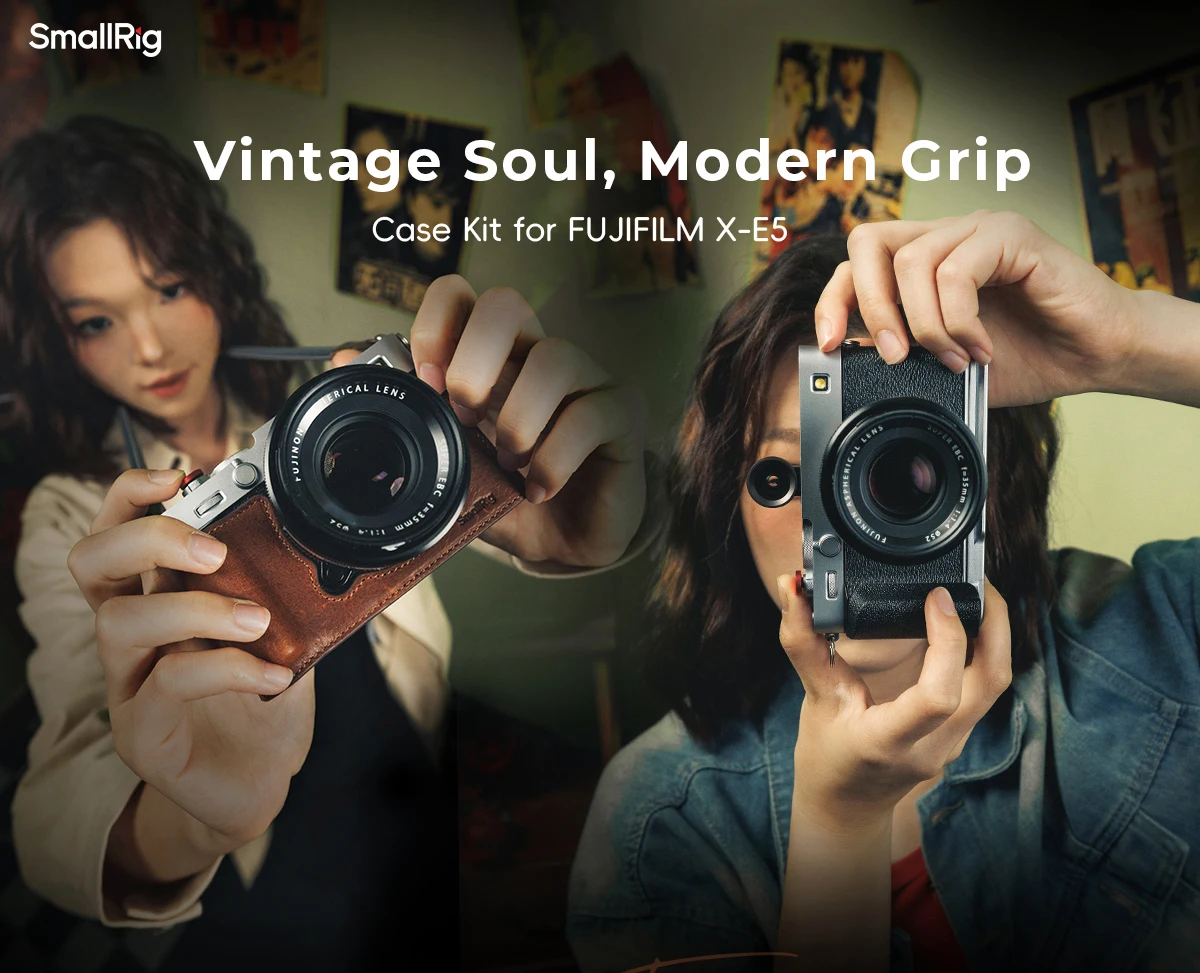 SmallRig Leather Case Kit for FUJIFILM X-E5 (Brown) 5449 is designed to provide comprehensive protection while enhancing the camera's vintage appeal. This kit includes a half case and a shoulder strap.