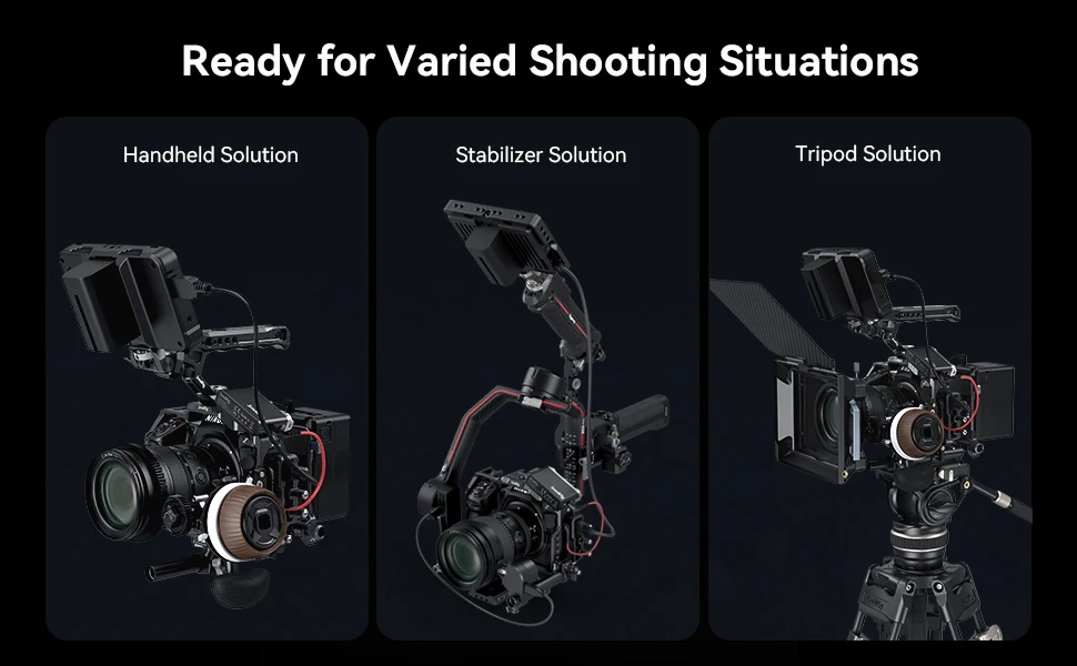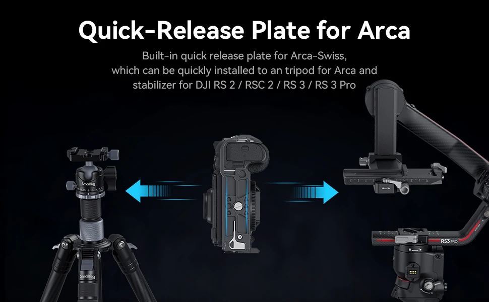 · Tripod and Gimbal Compatibility: Arca Swiss quick-release plate supports Arca-type tripods and DJI RS 2 / RSC 2 / RS 3 / RS 3 Pro gimbals.